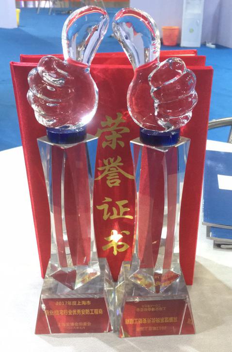 本次评选活动由上海安全防范报警协会主办,旨在表彰为上海市安防行业做出卓越贡献的工程商。经过网络投票、线下投票、专家投票、用户单位投票层层筛选后,我司荣获“2017年度本市商业/住宅行业优秀安防工程商”及“2017年度本市宾旅馆系统优秀安防工程商”两项大奖。